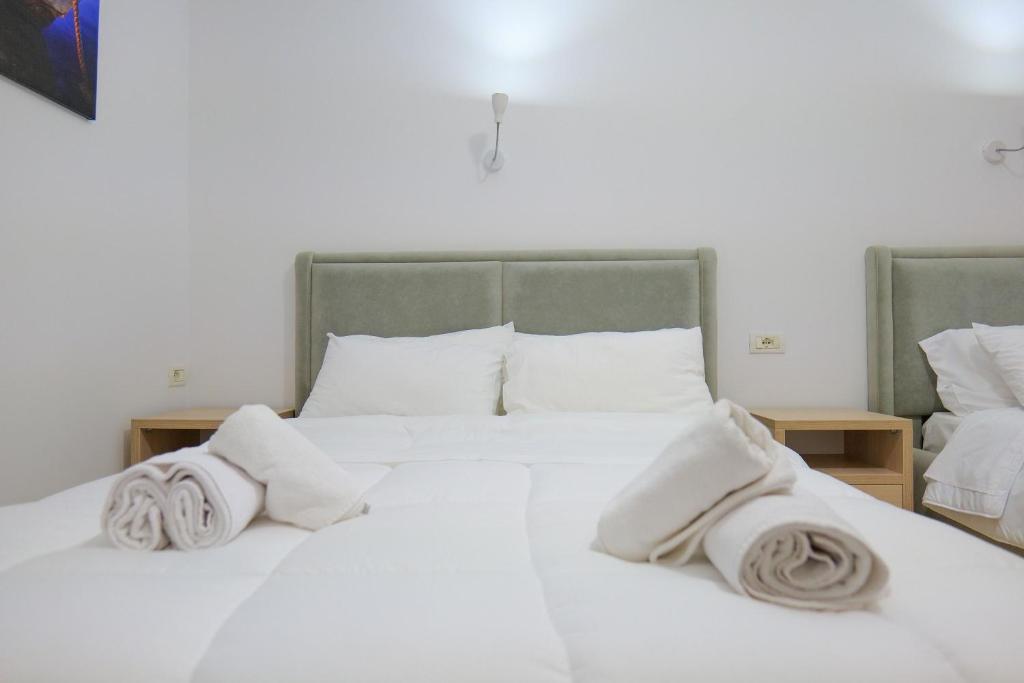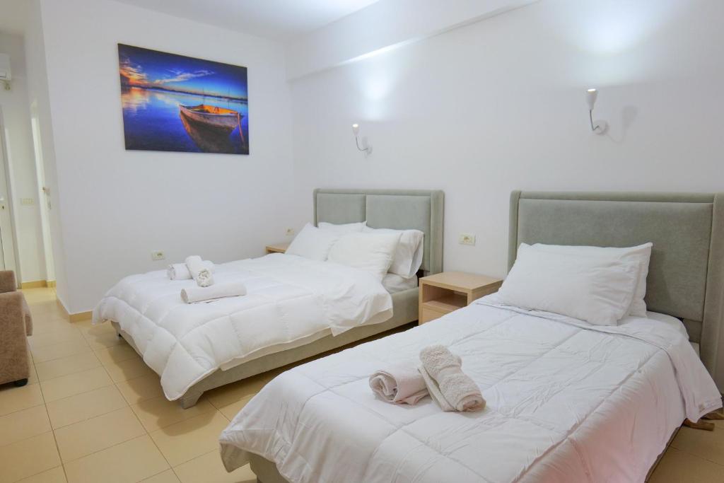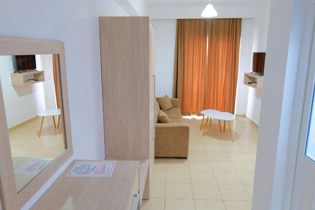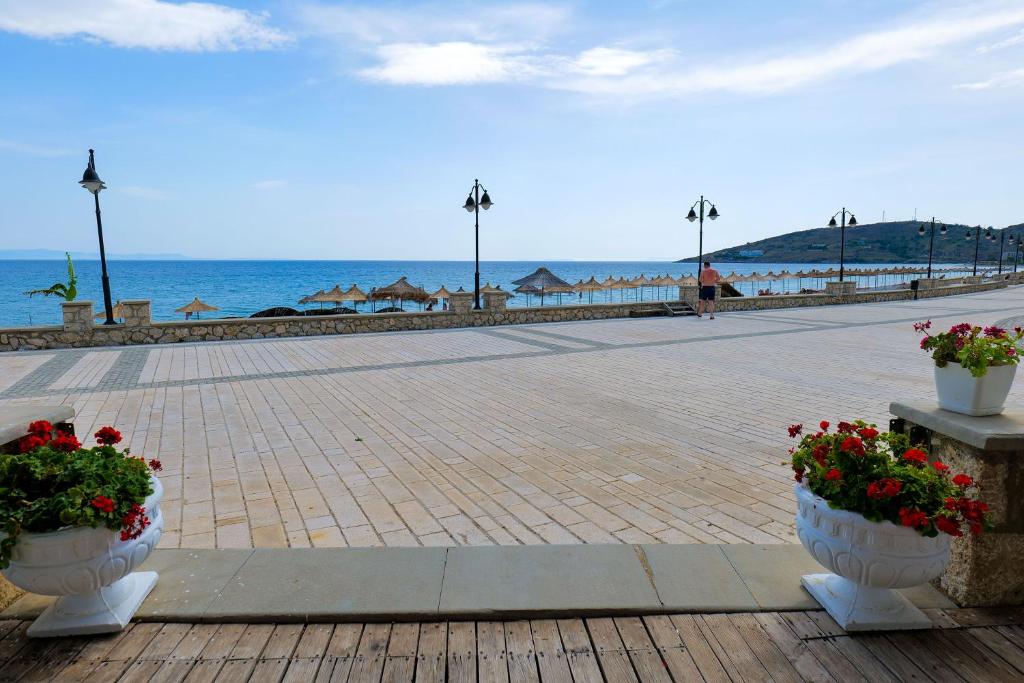 Easy to find and perfect walking distance to the beach. Parking in the off-season no problem. Nice balcony with sea view. A special feature I have seen for the first time in Albania: sliding doors to the balcony with sliding back screens and sash windows A dream! Good sleep guaranteed there